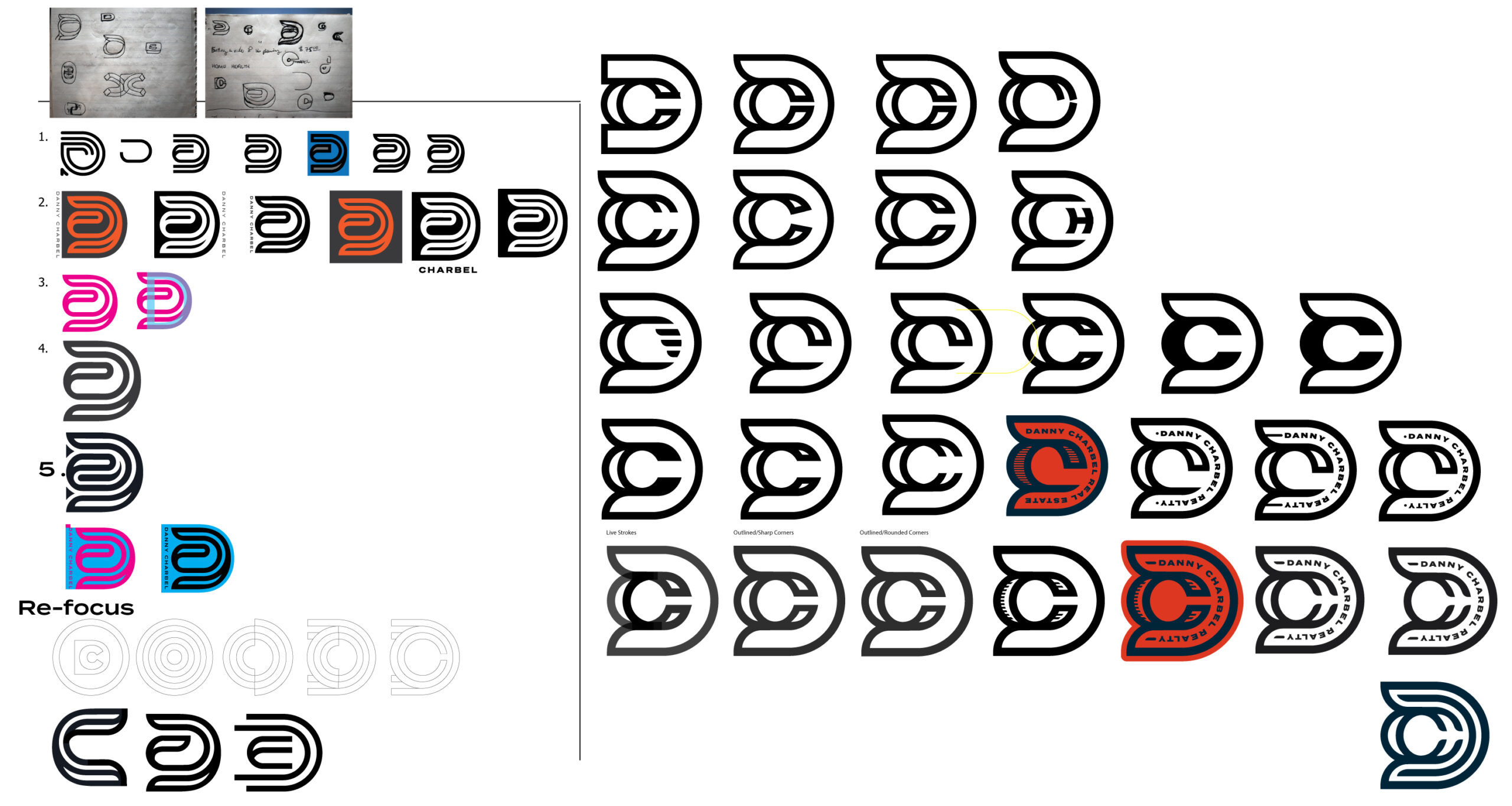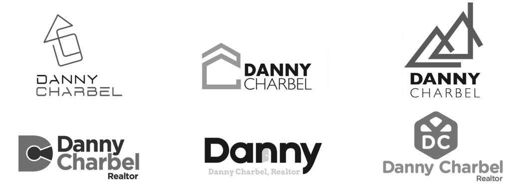 This direction explores a more personal expression of the brand, shaped around the client’s initials. The form is built from a custom monogram where the “C” is nested inside the counter of a bold, structured “D,” creating a symbol that represents Danny Charbel as an individual while still aligning with the broader Charbel identity. The idea grew from the client’s desire for a mark that could stand on its own, something recognizable enough to work on signage, merchandise, or a keychain, similar to the iconic symbols used by top-performing agents in his market. This approach focuses on creating a unique, ownable mark that is both personal and professional.